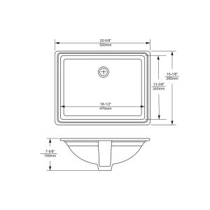C2020 20″ x 15″ White Square Ceramic Undermount Bathroom Vanity Vessel Sink